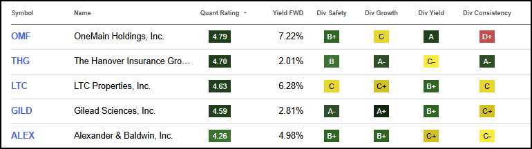 SA Quant has explored its universe of top dividend stocks and selected five options for investors based on their exceptional Quant factor and dividend grades.