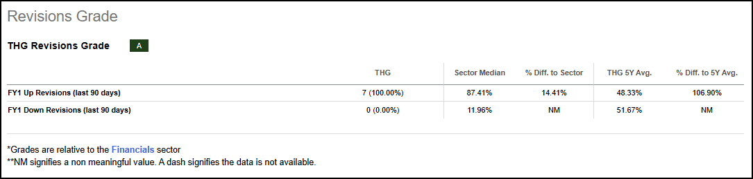 From an income perspective, THG’s dividend growth potential stands out with a one-year growth rate that’s 50% above the financials sector, accompanied by 18 consecutive years of increases. THG’s track record of strong execution, ongoing investments and technology, and capital allocation discipline indicates that both its share price and dividend are well-conditioned for continued growth.