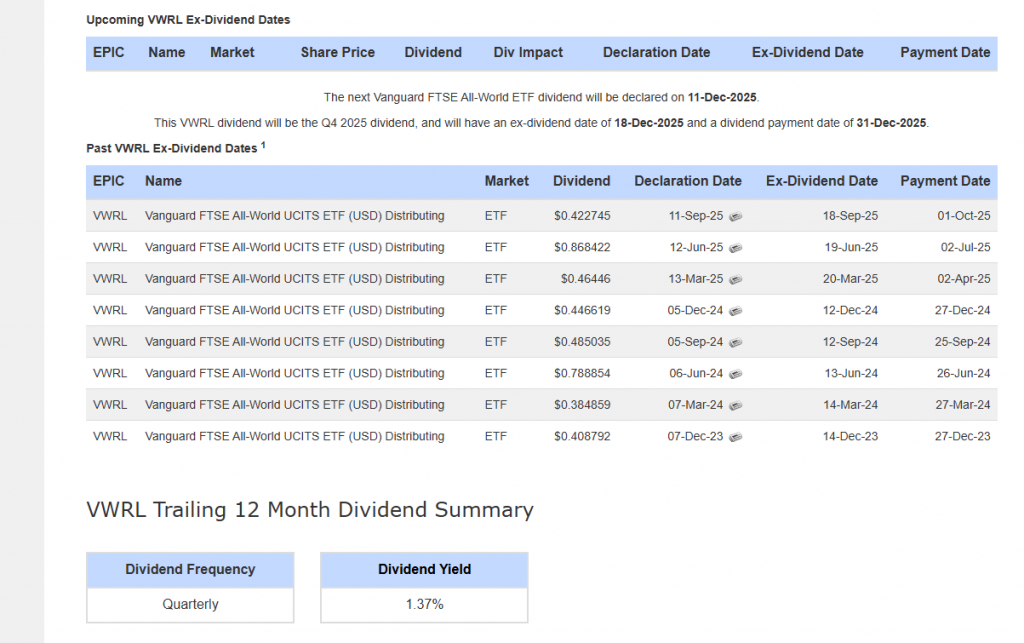 But the growth is not too shabby, so maybe one day when Mr. Market gives you the opportunity you could buy the sister share VWRL that pays a small dividend and pair trade it with a higher yielder.