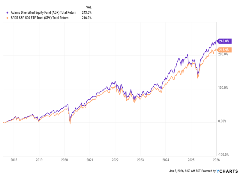 ![]() My Plan for 7.9% Dividends From the AI Boom (Hint: It Began in 1854) by Michael Foster, Investment Strategist The run that AI poster child NVIDIA (NVDA) has been on these last few years is truly incredible. That’s not news, of course. But what matters now is whether investors are overpaying for that growth – in both NVIDIA and AI as a whole. NVIDIA’s Monstrous Run ![]() Once a chipmaker known for appealing mainly to gamers, NVIDIA started to climb in 2023, thanks to a new technology only a few people really understood at the time: generative AI. Then, as AI spread in 2024, hopes – and NVIDIA’s stock – soared. That was followed by more fears of a bubble in AI. As with NVIDIA’s share price, a chart is the best way to do these worries justice: The Bubble in Worries About an AI Bubble ![]() There’s so much discussion of an AI bubble now that we seem to be in a bubble of talking about bubbles! That’s why some advisors are saying that this AI bubble talk is a distraction. I’d agree, as we can’t even be sure this is a bubble – and I’d argue it’s not. To see why I’m saying this, we need to look no further than NVIDIA shares. Consider this table of their performance in the last four years. ![]() Here I’ve broken out NVDA’s per-year returns since 2022, a year in which the stock plunged alongside all of tech. Note how its biggest year was in 2023, and that its gains have been moderating since? If this were really a bubble, you’d expect yearly gains to keep building and building until they hit a wall. That’s not the case here. In fact, I’d argue that we’re seeing a massively undervalued company becoming a fairly valued one. To really unpack this, let’s look at how much investors are paying for NVIDIA’s earnings. We’ll do that by looking at the stock’s price-to-earnings (P/E) ratio (in purple below). As you can see, it roughly matches that of “boring” big-box retailer Costco (COST)! Is NVIDIA Really Worth as Much as …Costco? ![]() I think you’ll agree that Costco, with its membership-driven revenue, is a pretty reliable revenue generator. This shows that investors are starting to see NVIDIA the same way. Note also that NVIDIA’s P/E ratio trailed that of Costco for most of 2025. In other words, this is not a bubbly valuation. And in fact, none of the “Magnificent 7” stocks sport higher valuations than Costco right now. That is, except for Tesla (TSLA), which in many ways lives in its own little world. To be sure, some aspects of the AI space do look bubbly, like the 700 seed-stage rounds that attracted $10 million or more in 2025. This shows that venture capitalists are indeed making some outrageous bets here. But that’s not a sign of a bubble. In fact, I heard the same worries about VC over investment in the early 2010s (if you don’t remember Juicero, it was a great example of VC silliness), when I worked on Wall Street. The market powered higher anyway. But what about all the infrastructure investments we hear about, especially around data centers? One report says we saw about a 30% growth rate in data-center spending in the middle of 2025, to about $40 billion on an annualized basis, and the Fed estimates about $41.2 billion. But both sources also cite rapid growth in building back in 2023 and 2024, so the 2025 rate actually moderated compared to 2024. If we look at total private construction of non-residential properties, as provided by the Census Bureau, a similar story appears. Source: US Census Bureau, CEF InsiderHere we can see spending growth on data-center construction (gray line) far outpacing all non residential spending (orange line) and overall private-sector spending (blue) in late 2023 and 2024. That was actually the case in the late 2010s, as well. In fact, data-center spending looks like it’s simply going back to where it was pre-pandemic. It’s also worth noting that the growth rate has been slowing since peaking in late 2023, much like NVIDIA’s stock-price growth has been moderating since then, too. In other words, this is clearly not a bubble – if anything, the bubbly numbers looked most alarming in late 2023. How I’m Playing the AI “Non-Bubble” So what’s the best approach for us here? For one, the data says this market is not acting irrationally. On the contrary, valuations suggest a mature market, and our best play is to remain fully invested and diversified. Most people would go with an index fund like the SPDR S&P 500 ETF (SPY) in a situation like this. But we want dividends, and SPY’s sad 1% yield just won’t cut it. In this market, while we wait for AI to continue its spread through the US economy, getting a big slice of our return in cash dividends is key. That’s why we prefer a closed-end fund (CEF) like the Adams Diversified Equity Fund (ADX), a long-time holding of my CEF Insider service. ADX is a proven long-term wealth generator, both in the form of dividends and capital gains. Since we bought the 7.9%-yielding fund in July 2017, it’s returned 243% in gains and dividends, as of this writing, soundly beating the S&P 500. “Dividend-Powered” ADX Beats the Market in the Long Term … ![]() That’s thanks to management’s stock-picking skills (ADX holds NVIDIA, along with many other top S&P 500 stocks). Their acumen stems from ADX’s long institutional memory: The fund traces its roots back to 1854 – yes, the mid-nineteenth century. And then there’s that income stream, responsible for a big slice of the fund’s total return: ADX’s 7.9% yield is roughly seven times that of the typical S&P 500 stock (note that ADX’s payouts do flex somewhat, based on its portfolio performance). The odd thing about CEFs like ADX is that when investors judge their performance, they tend to only look at price returns, not total returns (including dividends), as we discussed last week. And on a price basis, ADX returned 15.5% in 2025, just less than the 16.4% of an S&P 500 index fund. B