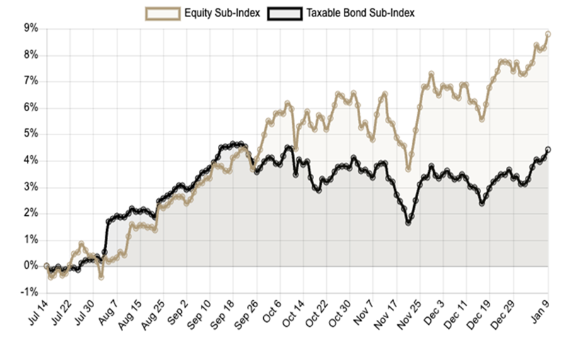 The reason is in the chart above: September was when CEF Insider‘s corporate-bond-fund subindex (in black) began lagging its equity-fund subindex (in brown). So CEF Insider focused more on equity funds, which have outperformed since.