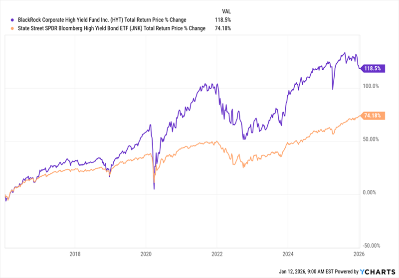 Buying corporate bonds individually is difficult, and bond ETFs typically underperform. But a CEF like the BlackRock Corporate High Yield Fund (HYT) is a great way to buy in, both now and over the next few weeks.