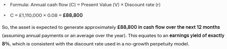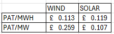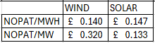 If you consider net operating profit after tax was 72.8% then the assets delivered £0.14m – £0.147m per MWH which is a price divided by pre-interest earnings of 7.5X – 8X.