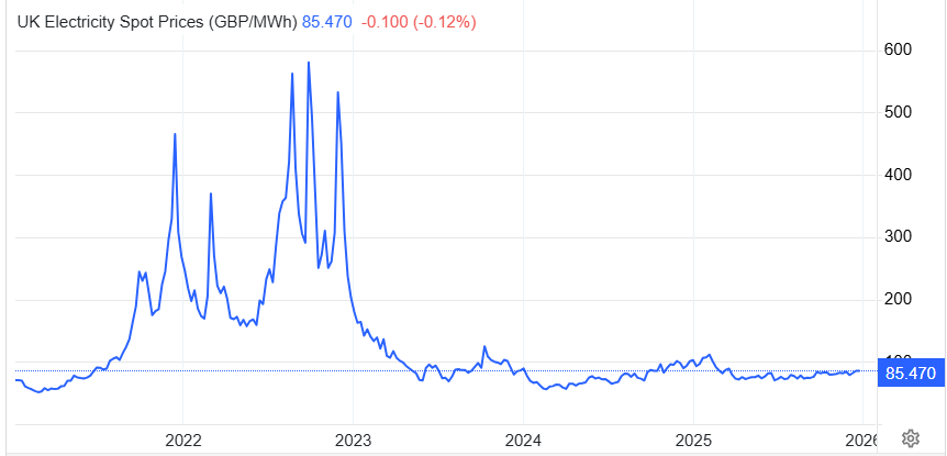 Their 2025 forecasts – as usual – have failed, and prices have been rising since early 2025 and stand at £85/MWh as I write vs the £65/MWh they “forecast”.