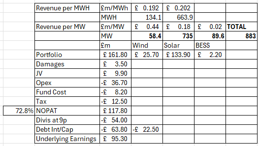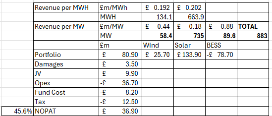 The fund in FY25 would have earned £37m in FY25 (a 45.6% NOPAT margin) and £15m PAT, and paying over -£54m of dividends would be out of the question. Of course one wonders whether the ensuing chaos of such a policy change would lead to much higher electricity prices, and those prices would insulate a power generator to some extent.