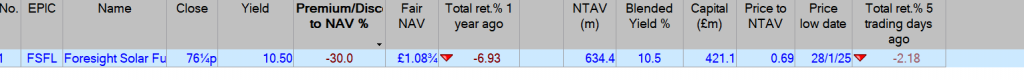 ·    Net Asset Value (NAV) of £603.8 million and NAV per Ordinary Share of 108.5 pence (31 December 2024: £634.4 million and 112.3 pence), principally driven by lower power price forecasts.