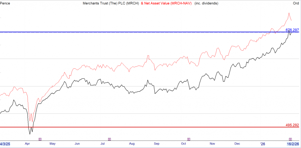 Merchants delivered a NAV total return of 5.4% over the six-month period, compared with 7.5% for the FTSE All-Share Index. Absolute returns were positive, though relative performance lagged the benchmark and some peers. This was largely due to the narrowness of market leadership: as in the US, certain groups of companies drove the market higher.