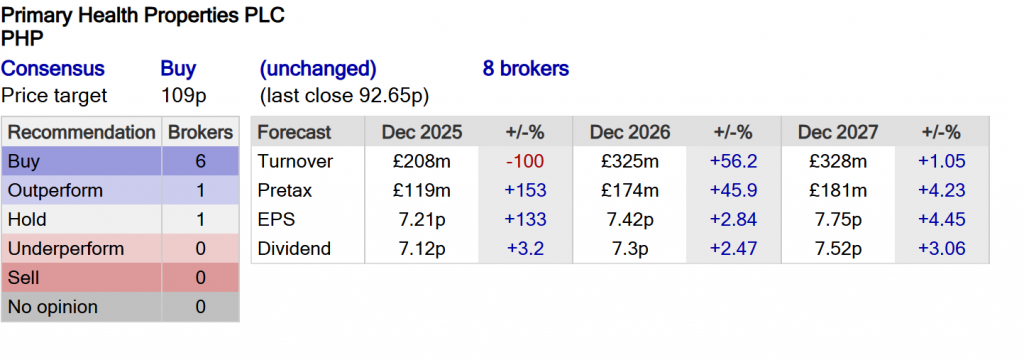 Stifel raises Primary Health Properties to ‘buy’ (hold) – price target 105 (92) pence.