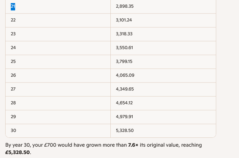 If you look at the chart, compound interest takes a while to make a noticeable difference, so if you are just starting out GL.
