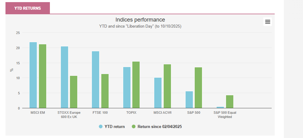 The table below lists all investment companies in the AIC Global and AIC Global Equity Income sectors that have outperformed the MSCI ACWI Index since the beginning of the year (to 10/10/2025).