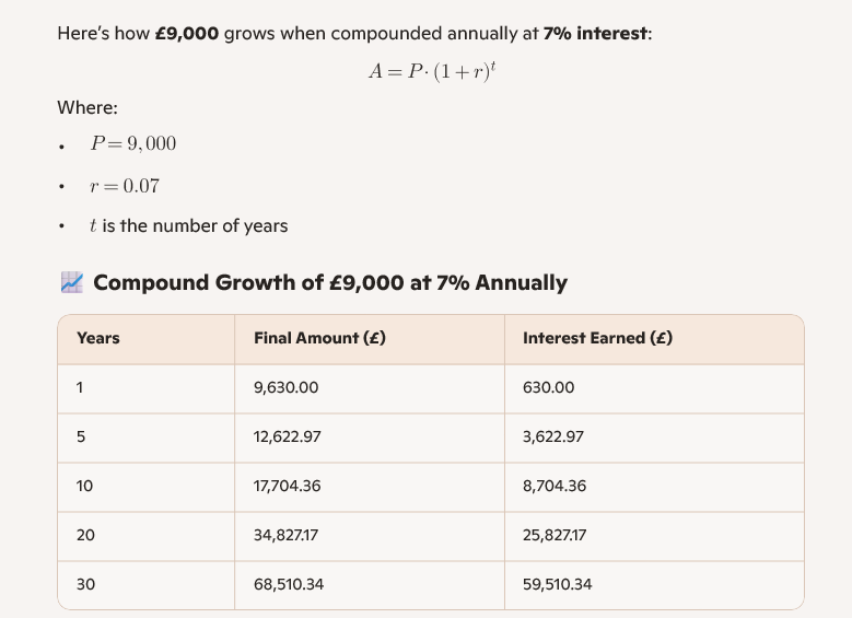 You would be earning, for ease of comparison ten percent on your seed capital and let’s say 7% on the dividends re-invested, income of £900 plus £600 a yield of 16% after ten years. Anyone lucky enough to have longer to invest the amount of income growth accelerates.