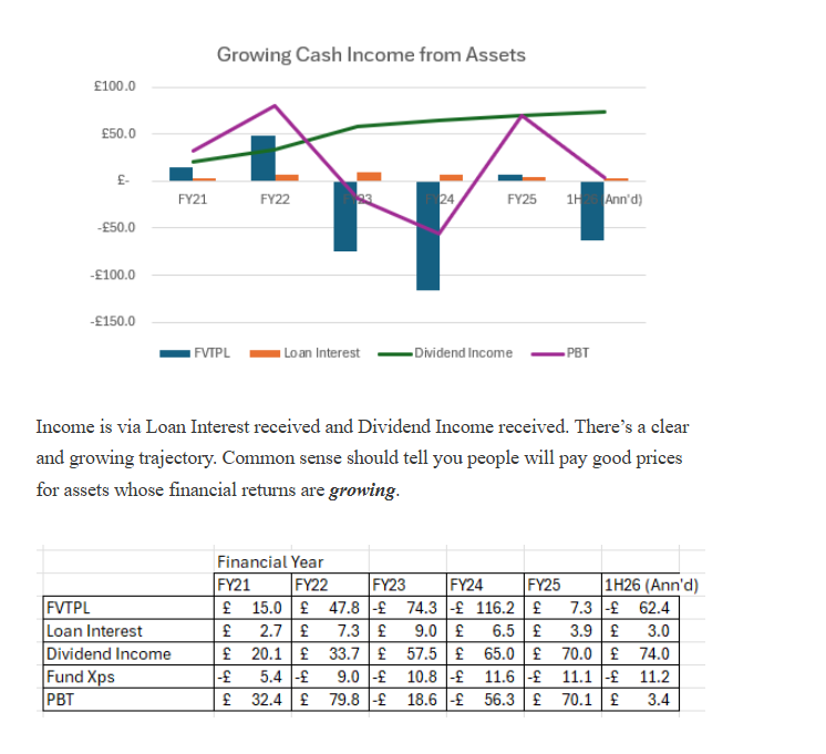 Driva generated SEK84m in 2025 (annualising the 1H25 result). That’s £6.7m. Taking £82m NAV and £54m debt that’s a £136m GAV so a 21.9X EBITDA valuation.