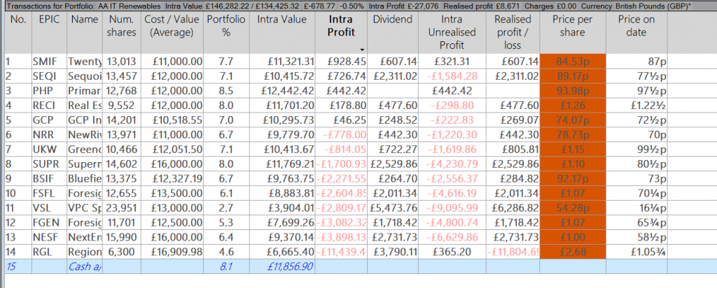 If you look at the figure for RGL in part 3 you will see the amount of loss for the overall position is a lot less but it’s very unlikely the cash lost will ever be completely recovered but you would have also earned some more cash which has been re-invested from their paid dividends.