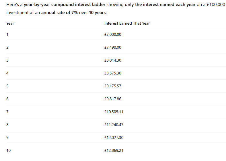 7% re-invested back into your Snowball nearly doubles the income every ten years.