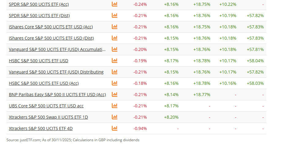 return in GBP in 2025 per 30/11/2025