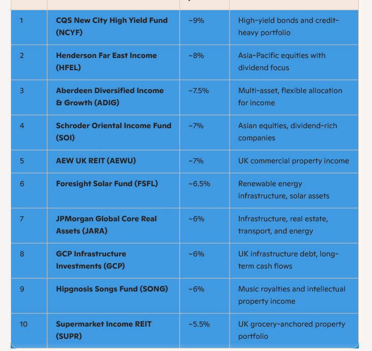 🔝 Top 10 High-Yielding Investment Trusts (2025)