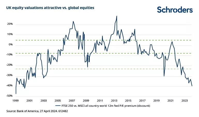 Meanwhile, private investors continue to pull money out of UK equity funds, channelling it instead into passively-managed global and US equity funds. Asset managers are bullish about the prospects for US large-cap stocks and European equities but not the poor old UK. Even wealth managers such as Coutts are turning their back on the UK – at precisely the wrong time, in my view.