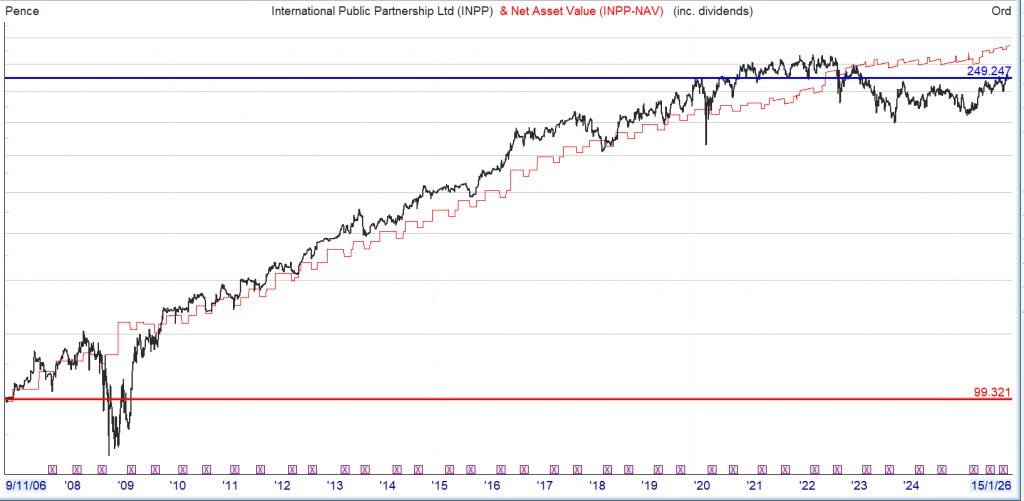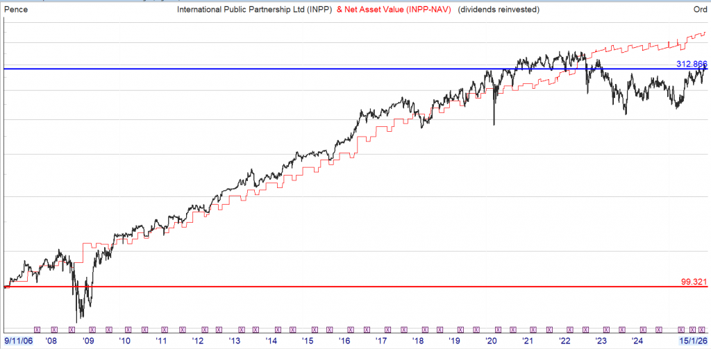 0.32% in 2018 and added significantly to it in 2025. The portfolio of infrastructure projects includes train leasing, offshore power cables and London’s new “super sewer”. INPP yields around 7%. Its discount is -16%.